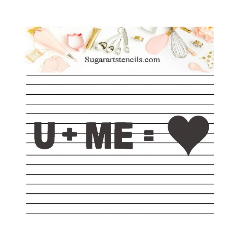 Overall stencil is 5.5 inches x 5.5 inches square ,made out of 5 mil food safe white translucent plastic.