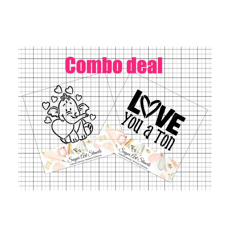 Valentine's day PYO cookie stencil set elephant Love you a ton CB005