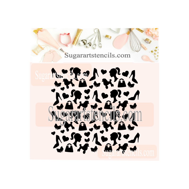 Barbie cookie stencil pattern background.