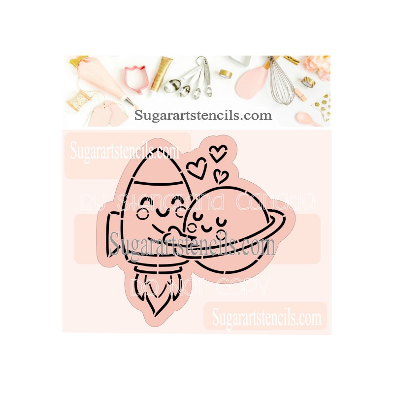 Valentine rocket ship Paint Your Own cookie stencil PYO VL011