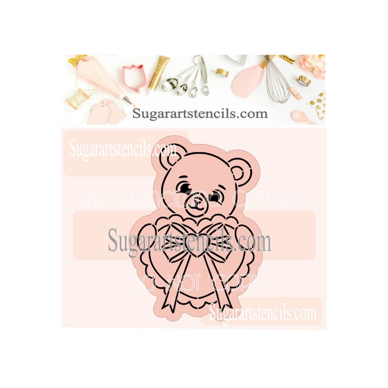 Valentine bear Paint Your Own cookie stencil PYO VL020