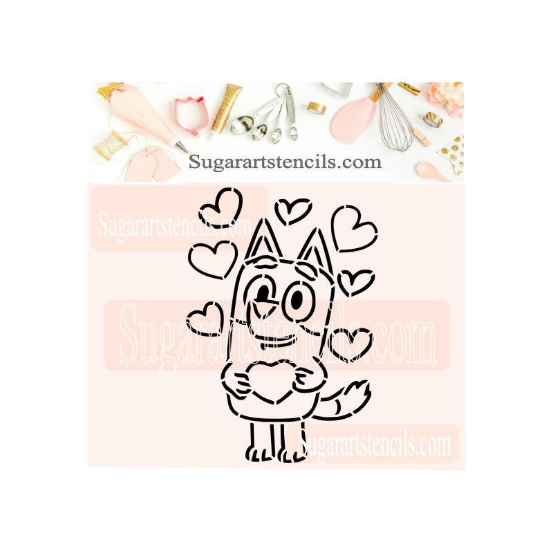 This stencil is 5.5" X 5.5" (overall) ,made to fit the stencil genie and the Sweet stencil holder by the sweetest tiers.